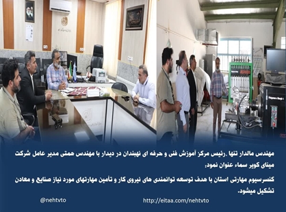 مالدار تنها ،رئیس مرکز آموزش فنی و حرفه ای نهبندان در دیدار با مهندس همتی مدیر عامل شرکت مینای کویر سماء عنوان نمود: