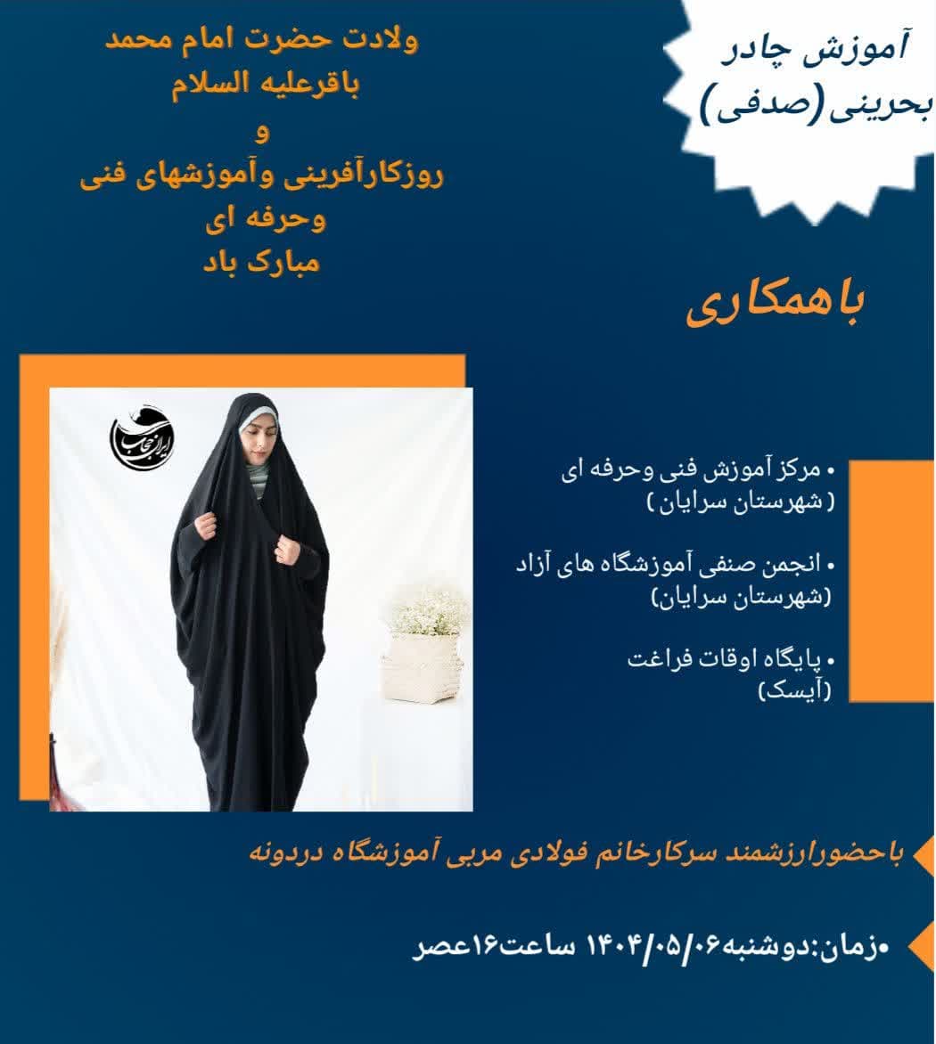مربیان آموزش گاههای آزاد شهرستان  سرایان در اقدامی جهادی اقدام به برگزاری دوره های آموزشی کوتاه مدت مهارتی در هفته ملی مهارت در مناطق مختلف شهرستان نمودند.طاهر پور کلانتری رئیس مرکز آموزش فنی و حرفه ای شهرستان سرایان گفت : به یاد شهدای اقتدار به منظور ترویج آموزشهای فنی و حرفه ای آموزشگاههای آزاد دردونه ،آموزشگاه ماهلین ،آموزشگاه مهدیس ،آموزشگاه آلامد و آموزشگاه زیبا مد با برگزاری دوره های دوخت چادر بحرینی ، دوخت لباس زنانه ،تکنیک دوخت یقه شکاری ، ساقه دوزی و دوخت چادر بحرینی در این اقدام جهادی مهارتی شرکت کردند .وی گفت : این آموزشها . آموزش ها ی مرتبط با صنایع پوشاک بوده که همگی در نوع خود جزو بر روز ترین آموزشها بودا اند.